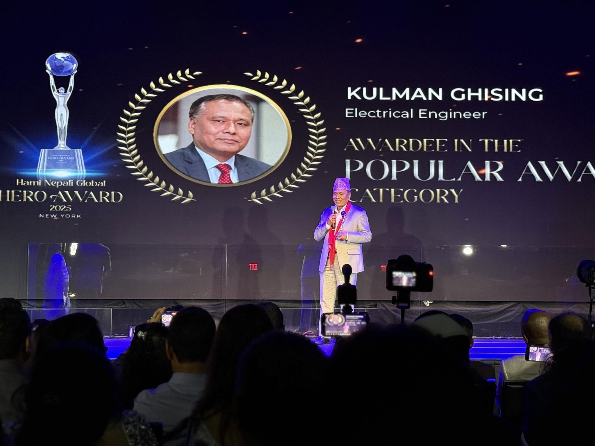 नेपाल विद्युत प्राधिकरणका पूर्व कार्यकारी निर्देशक कुलमान घिसिङलाई अमेरिकाको न्यूयोर्कमा आयोजित एक विशेष समारोहमा ’ग्लोबल हिरो अवार्ड’ प्रदान गरिएको छ। प्रवासी नेपालीहरूको संस्था ‘हामी नेपाली ग्लोबल’ले उनलाई यो सम्मान प्रदान गरेको हो।