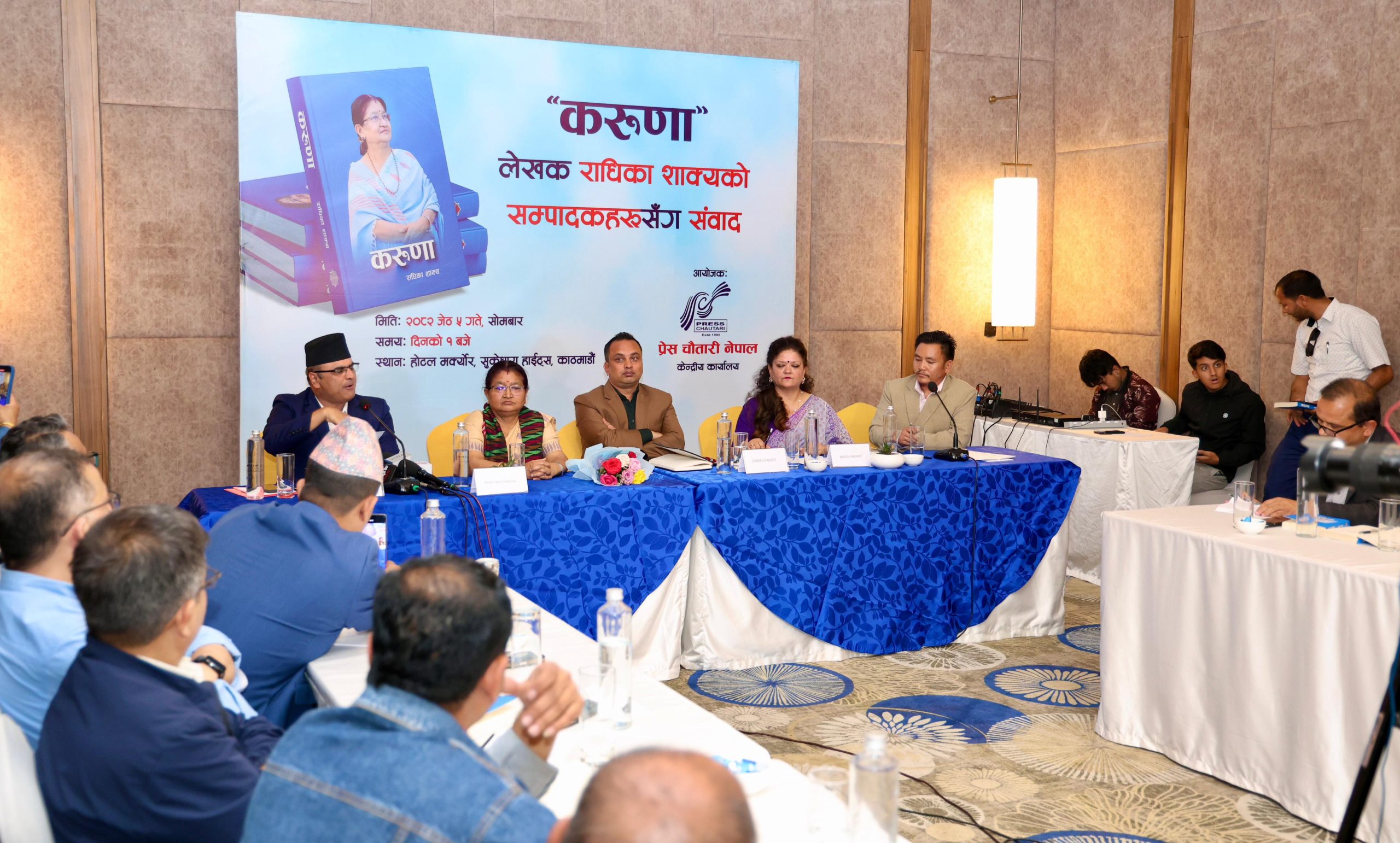नेकपा (एमाले) निकट प्रेस चौतारी नेपालले हिजो दिउँसो प्रधानमन्त्री केपी ओलीकी पत्नी राधिका शाक्य लिखित ‘करुणा’ माथि ‘छानेचुने’ का थुप्रै सम्पादकहरुलाई पाँचतारे होटल मर्क्योरमा ‘निमन्त्रणा’ गरी विमर्श गर्यो । काठमाडौंको सुकेधारामा अवस्थित ३ अर्ब रुपियाँमा निर्माण गरिएको पाँचतारे होटल मर्क्योर त्यही हो, जसलाई गएको २ माघमा मात्र प्रधानमन्त्री केपी ओलीले नै उद्घाटन गरेका थिए । जानकारहरुका भनाइमा खासमा त्यो तारे होटल शहरी विकासको मापदण्डलाई मिचेर बनाइएको छ । हिजो त्यही होटलमा प्रेस चौतारीले राधिका ‘आमा’ को करुणामाथि विमर्श ‘छेडेको’ हो ।