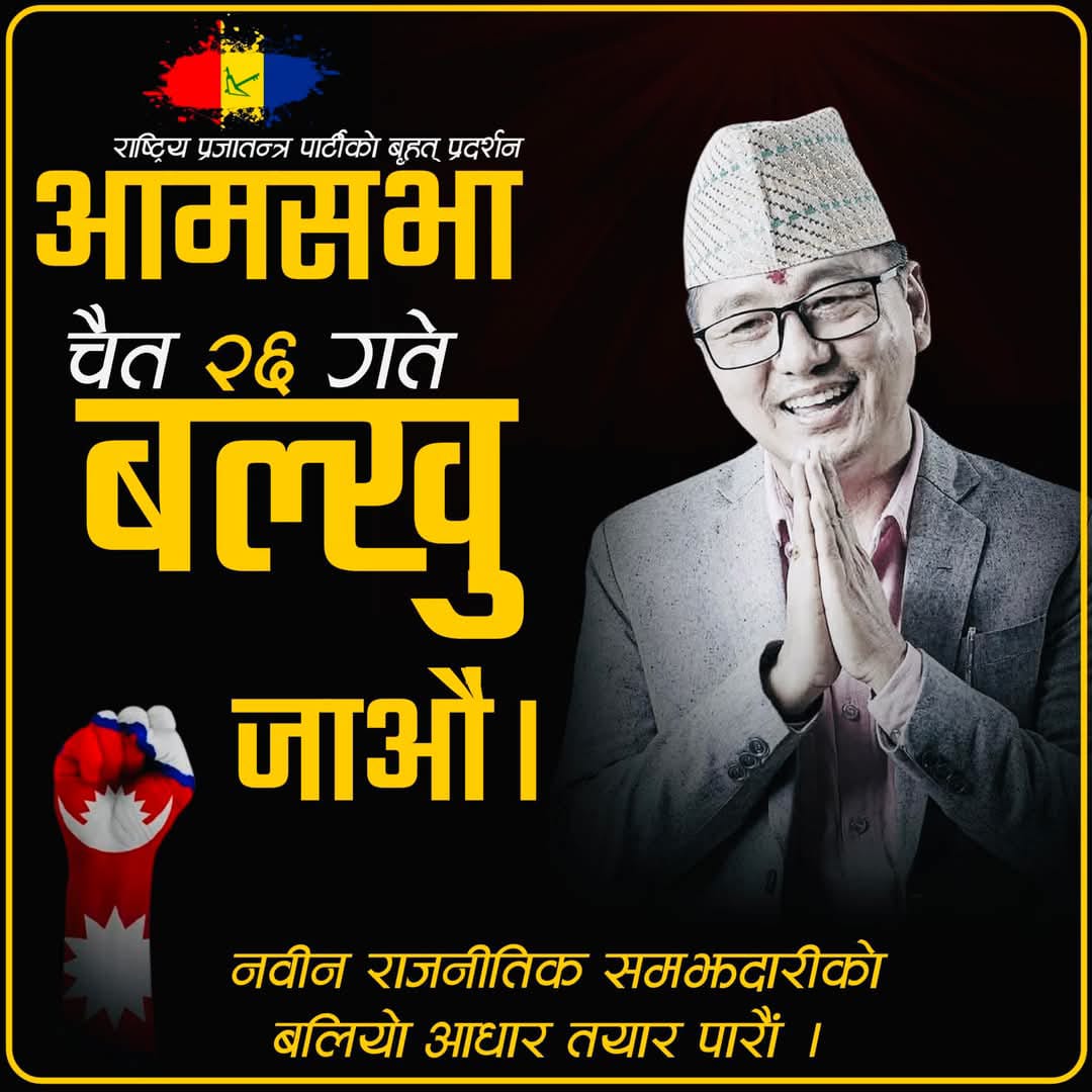 राष्ट्रिय प्रजातन्त्र पार्टीले आज बिशाल आमसभा प्रदर्शन गर्दैछ ।
