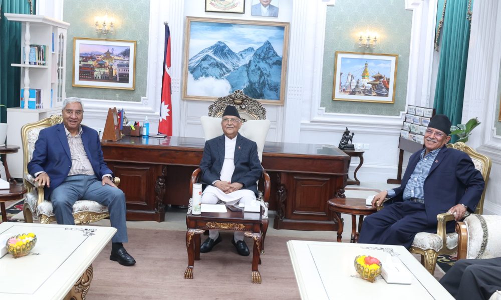 प्रमुख तीन दलका शीर्ष नेताहरूको बैठक सुरू भएको छ । प्रधानमन्त्री तथा मन्त्रीपरिषदको कार्यालय, सिंहदरवारमा उक्त बैठक सुरू भएको हो । बैठकमा प्रधानमन्त्रीसमेत रहेका नेकपा एमालेका...