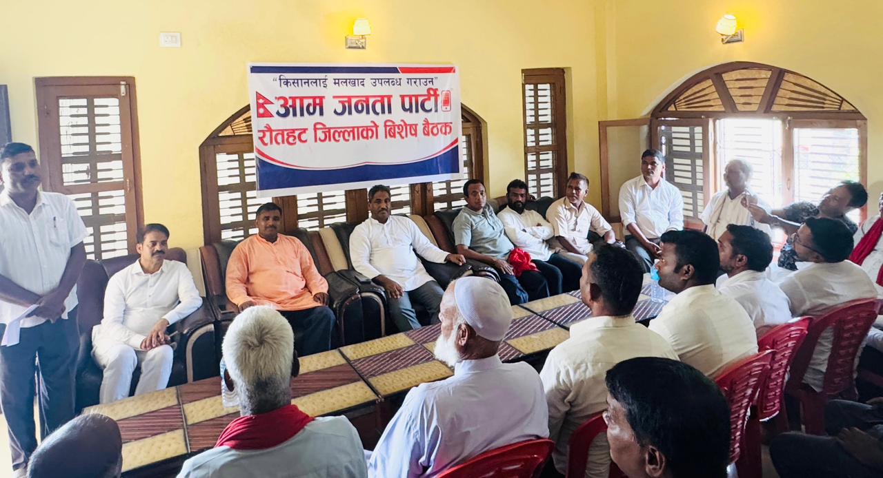 बैठकले संगठन निर्माण, बिस्तारका साथै किसानलाई मलखाद्य, बिउँबिजन उपलब्ध गराउँन संघर्ष गर्ने निष्कर्ष निकालेको छ । आजपा रौतहट ईन्चार्य धर्मेन्द्र पटेलको अध्यक्षतामा भएको कार्यक्रममा आजपा कार्यालय सदस्यहरू समिना हुसैन, त्रिभुवन साह, सियाराम कुशवाहा, उमेश कुशवाहा लगायतका नेताहरुको विशेष सहभागिता रहेको थियो ।