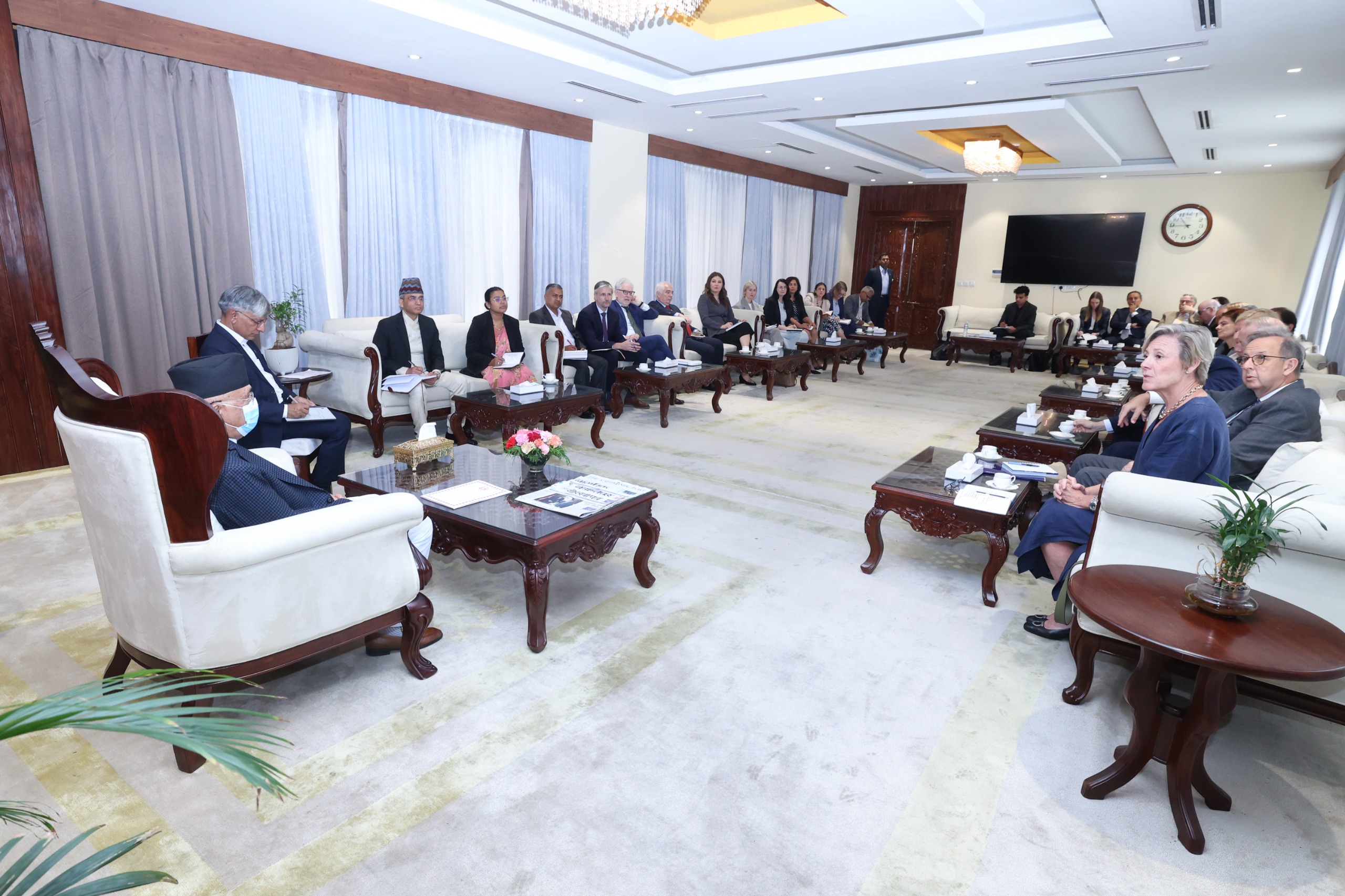 प्रधानमन्त्री केपी शर्मा ओलीसँग युरोपियन युनियनको प्रतिनिधिमण्डलले आज शिष्टाचार भेट गरेको छ ।