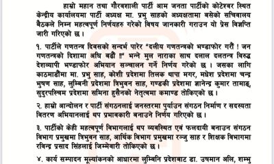 आम जनता पार्टी (आजपा) निकटको आम महिला मोर्चाले राज्यको हरेक तह र निकायमा महिलालाई ५१ प्रतिशत सहभागिताको माग गरेको छ ।