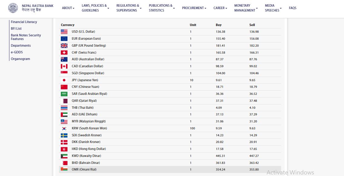 कुवेती दिनार एकको खरिददर ४४५ रूपैयाँ ३१ पैसा र बिक्रीदर ४४७ रूपैयाँ २७ पैसा र बहराइन दिनार एकको खरिददर ३६१ रूपैयाँ ८३ पैसा र बिक्रीदर ३६३ रूपैयाँ ४२ पैसा तोकिएको राष्ट्र बैंकले जनाएको छ ।