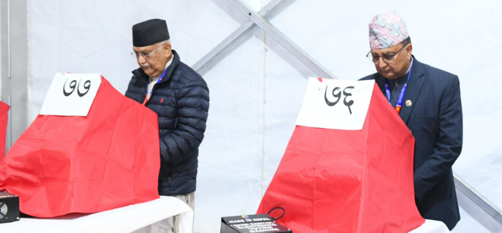 नेकपा एमालेको ११औँ महाधिवेशनमा अध्यक्षका प्रत्यासी केपी शर्मा ओली र वरिष्ठ ईश्वर पोखरेलले मतदान गरेका छन्।